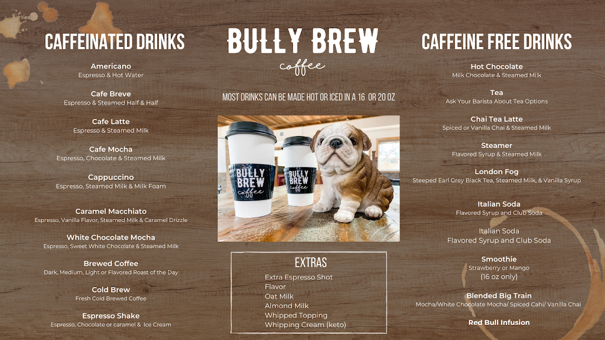 Welcome to Bully Brew Coffee, a charming café located at 3216 Veterans Blvd in Fargo, ND. This delightful spot greets you with an array of enticing menu options that cater to both coffee aficionados and casual drinkers alike. Start your day with their selection of robust brews, including a classic Americano or a decadent caramel macchiato. For those seeking something refreshing, the cold brew and spiced chai latte are sure to hit the spot.
